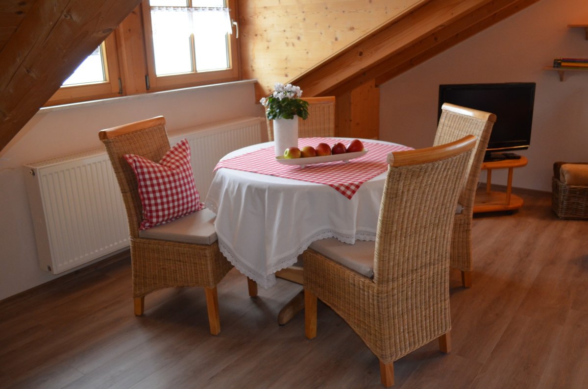Unsere liebevoll gemütlich eingerichtete 3Sterne Ferienwohnung befindet sich im Dachgeschoß. Genießen Sie den herrlichen Blick nach Süden und Westen in die Bergwelt,mit Westbalkon.